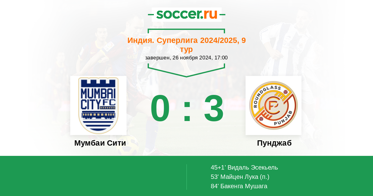 Протокол матча Мумбаи Сити против Пунджаб