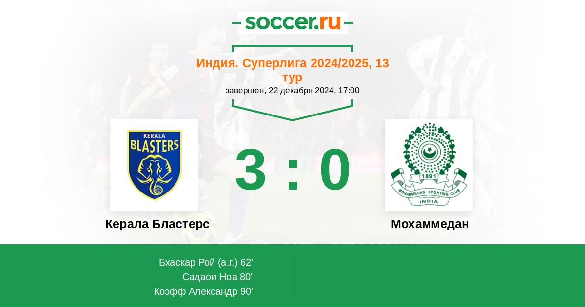 Протокол матча Керала Бластерс против Мохаммедан