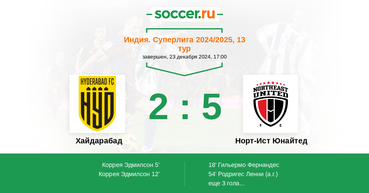 Протокол матча Хайдарабад против Норт-Ист Юнайтед