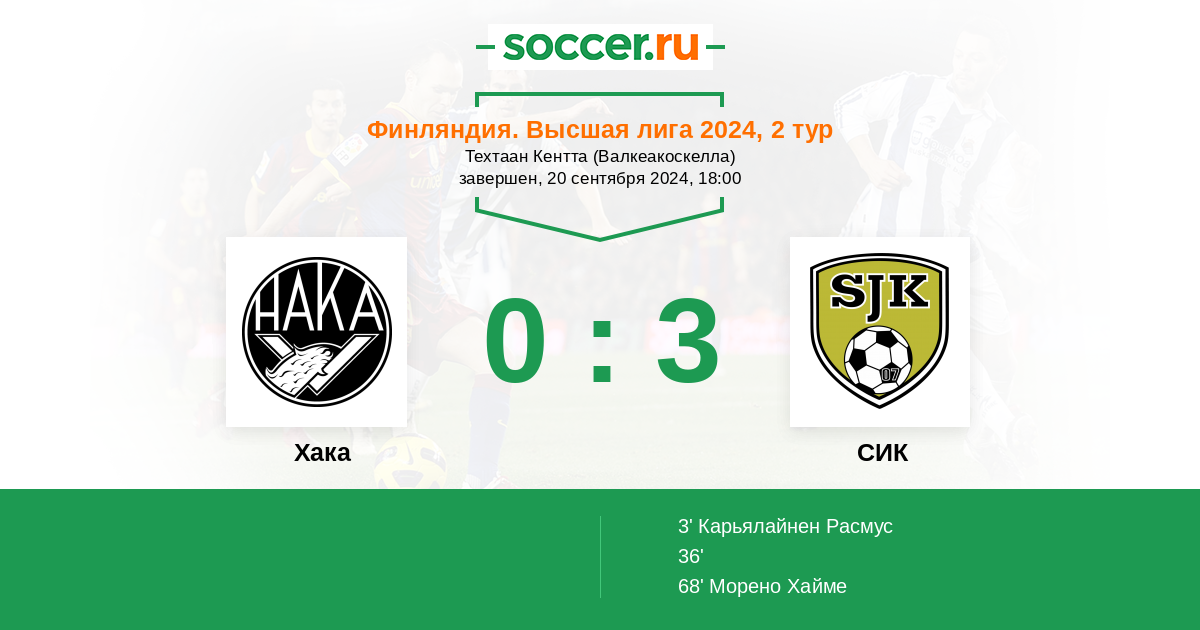 68' (0:3) Морено Хайме (9) (Ханнола Пири (10))