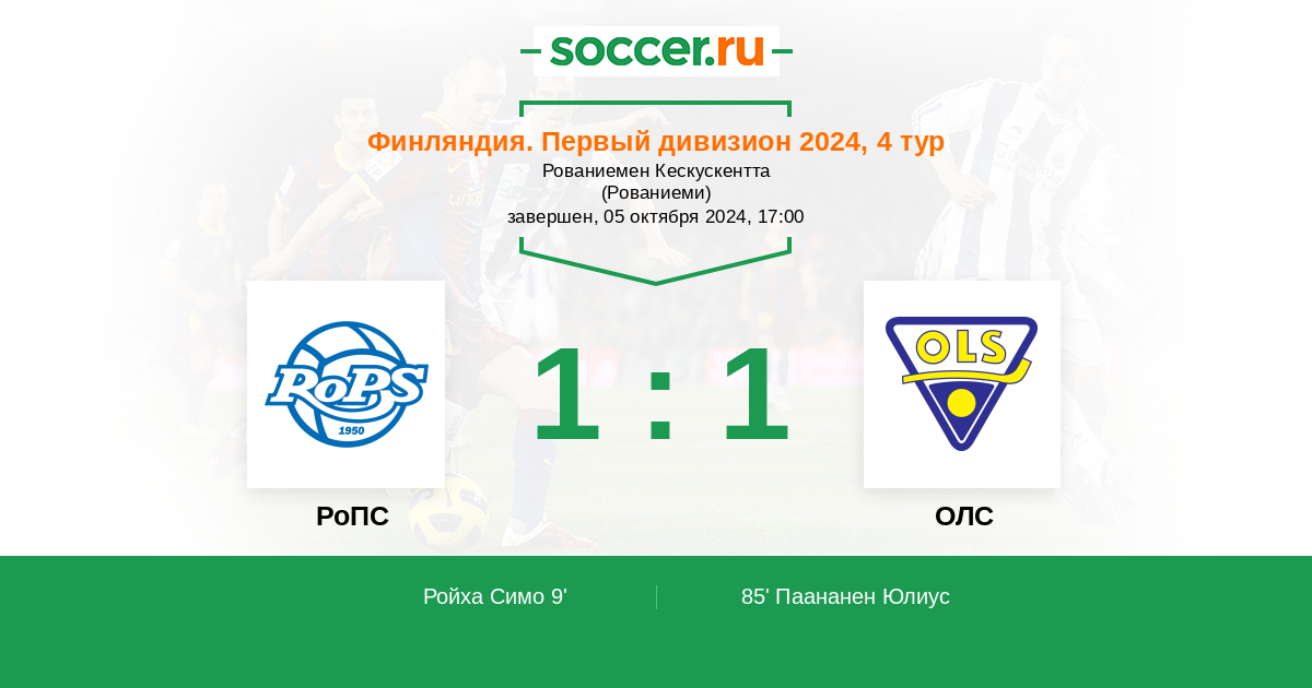 Протокол матча РоПС против ОЛС