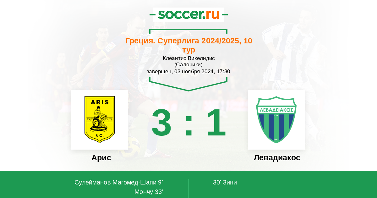 Протокол матча Арис против Левадиакос