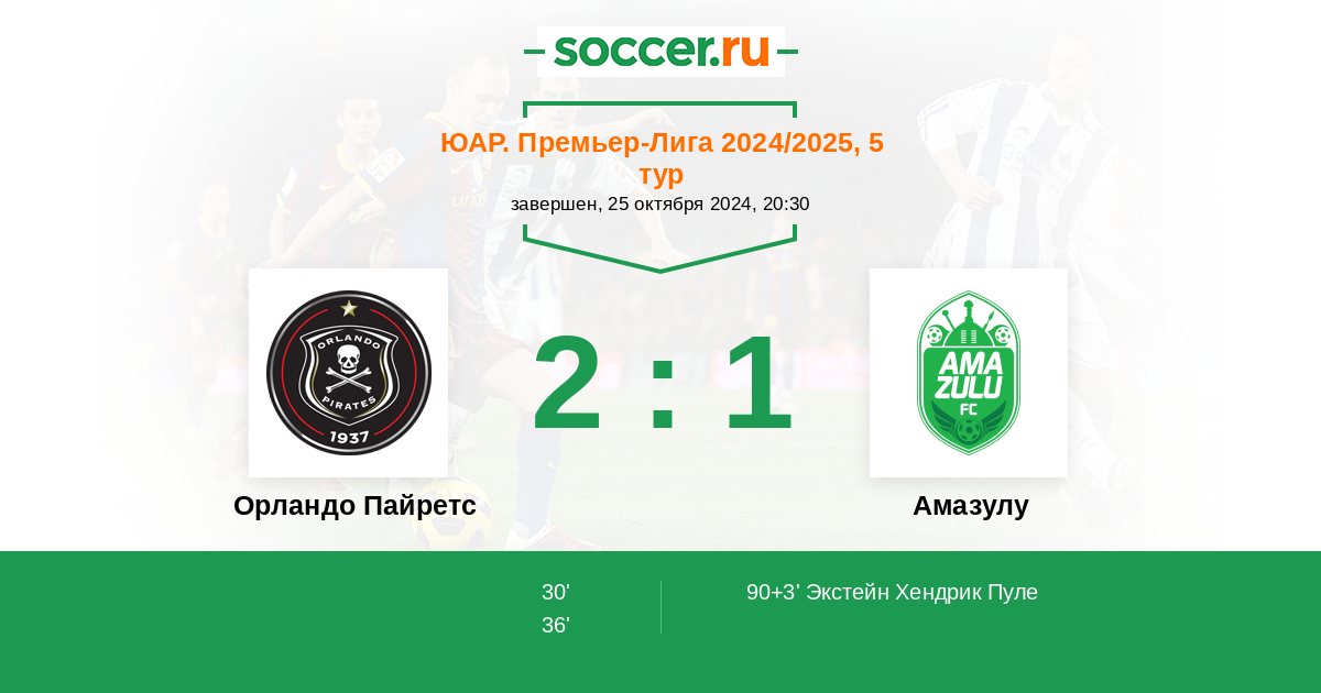 Протокол матча Орландо Пайретс против Амазулу
