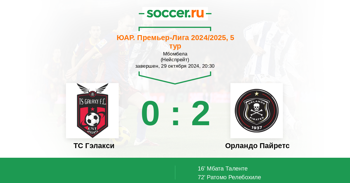 Протокол матча ТС Гэлакси против Орландо Пайретс