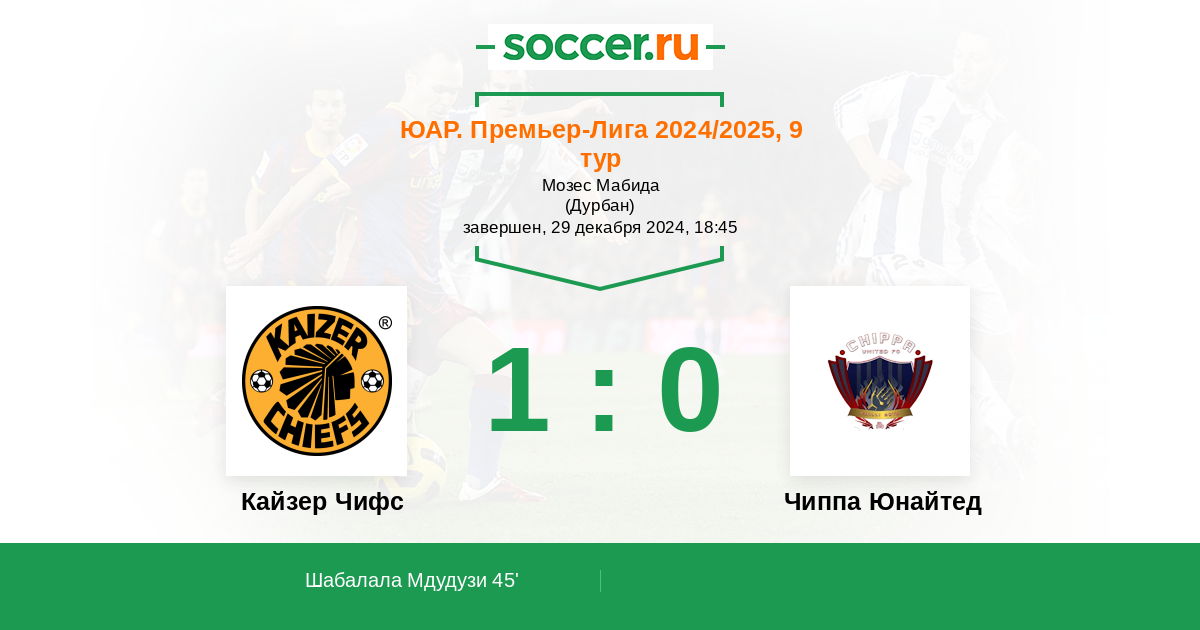 45' (1:0) Шабалала Мдудузи (42) (Дитлокве Татаяоне (24))