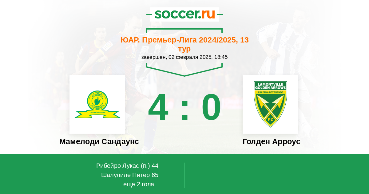 Протокол матча Мамелоди Сандаунс против Голден Арроус