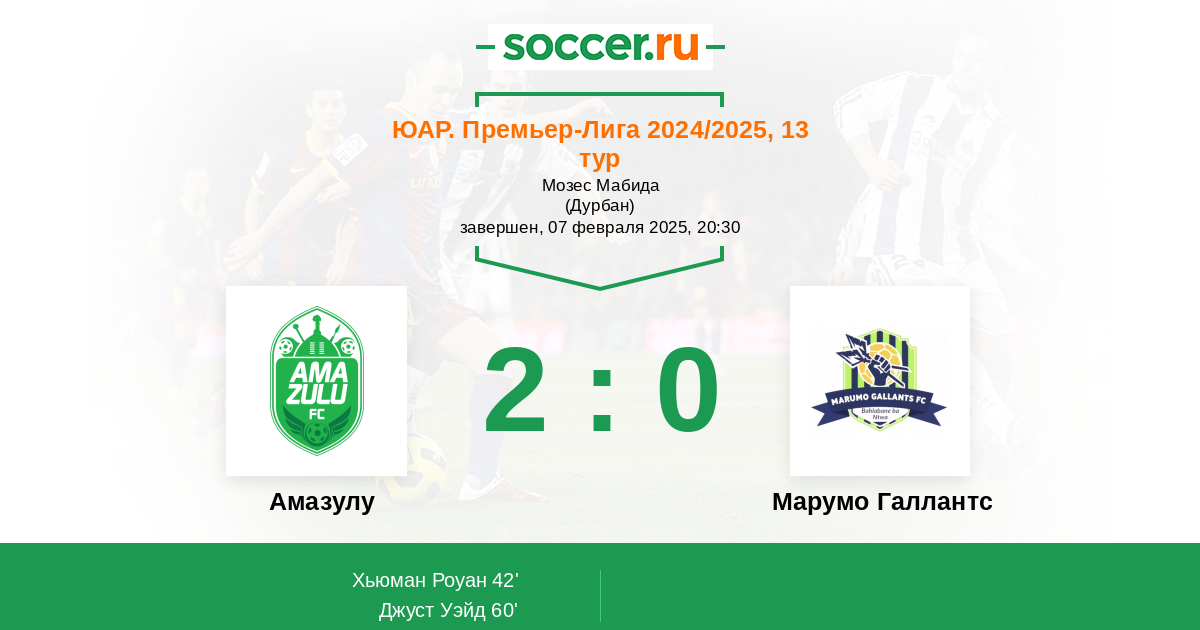 42' (1:0) Хьюман Роуан (21) (Мореми Шепанг (19))