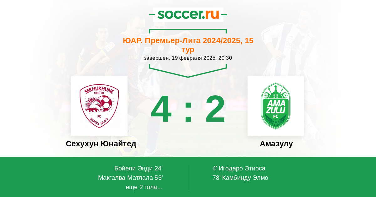 Протокол матча Сехухун Юнайтед против Амазулу