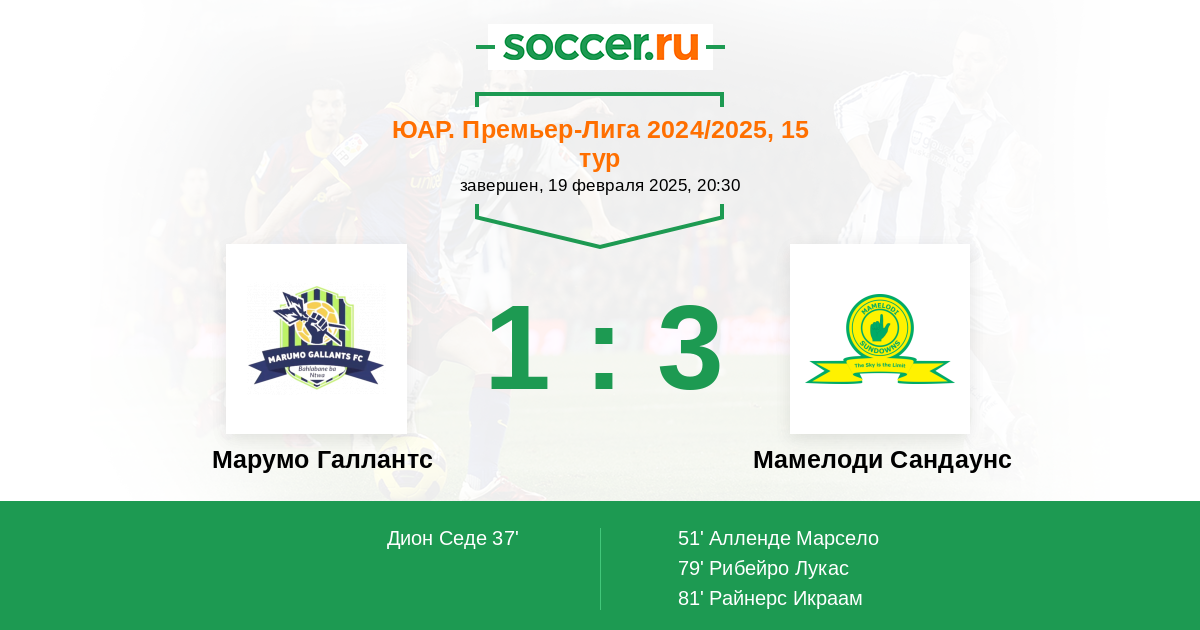 Протокол матча Марумо Галлантс против Мамелоди Сандаунс