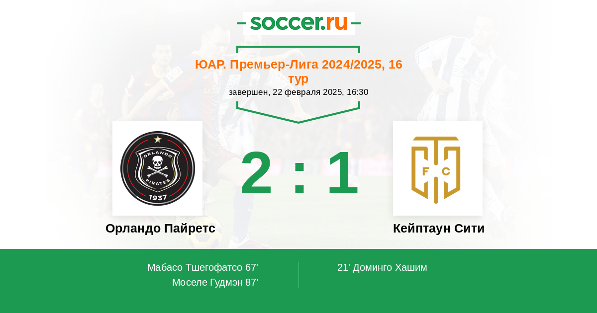 Протокол матча Орландо Пайретс против Кейптаун Сити