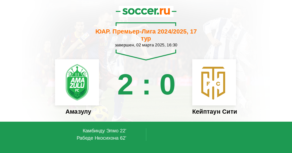 Протокол матча Амазулу против Кейптаун Сити