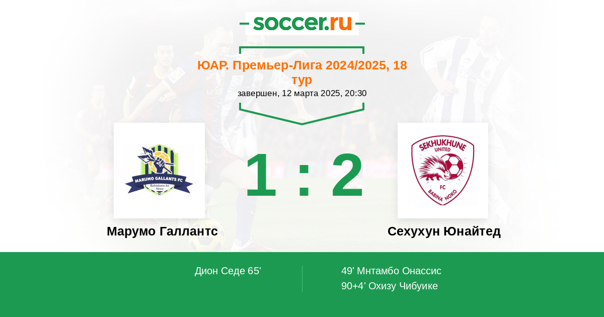 Протокол матча Марумо Галлантс против Сехухун Юнайтед