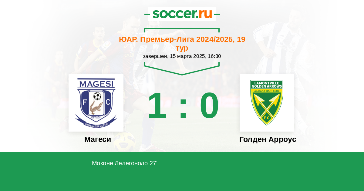 Протокол матча Магеси против Голден Арроус