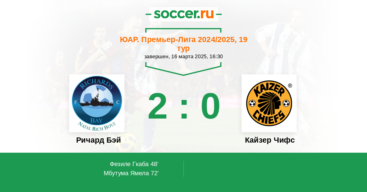 Протокол матча Ричард Бэй против Кайзер Чифс