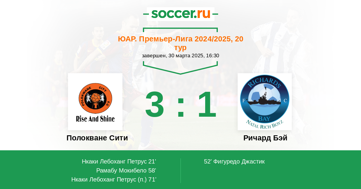 Протокол матча Полокване Сити против Ричард Бэй