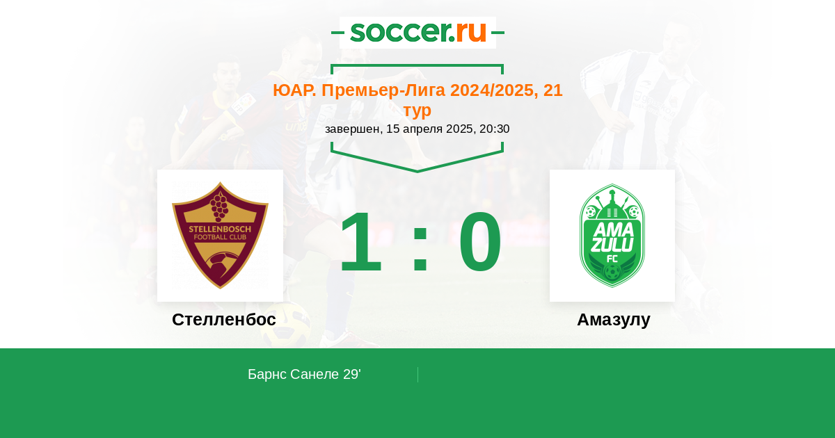 Протокол матча Стелленбос против Амазулу