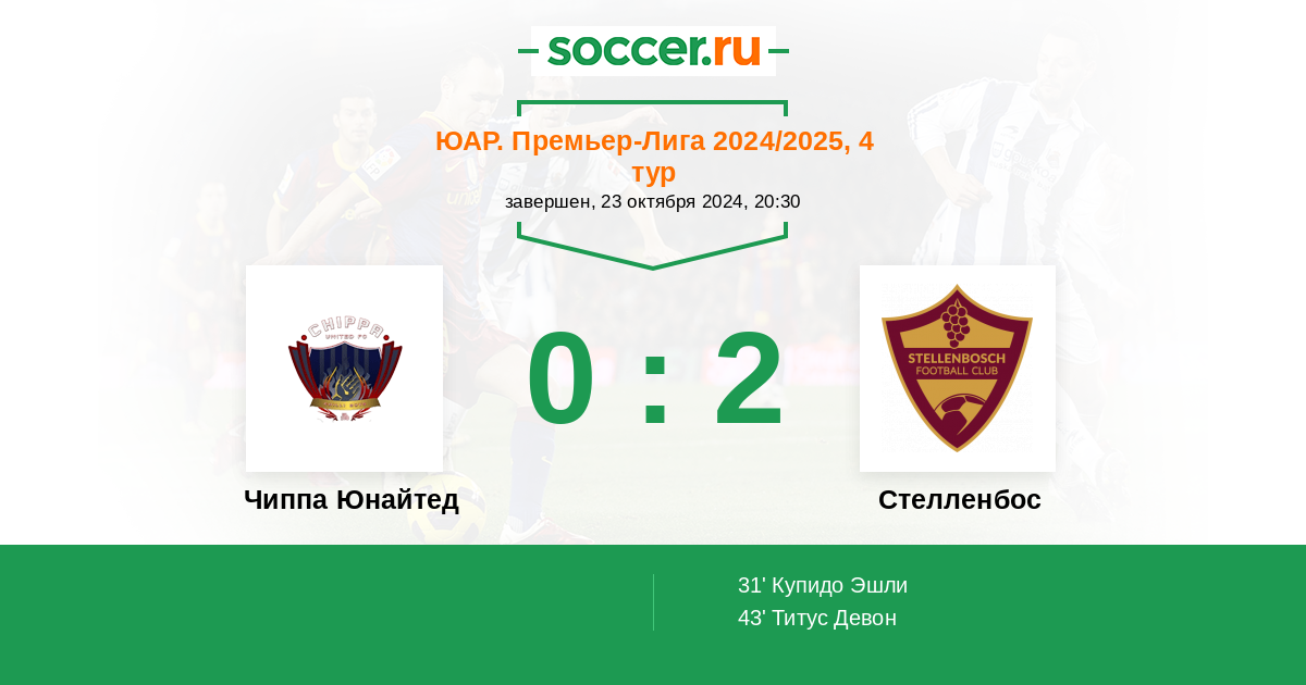 Протокол матча Чиппа Юнайтед против Стелленбос