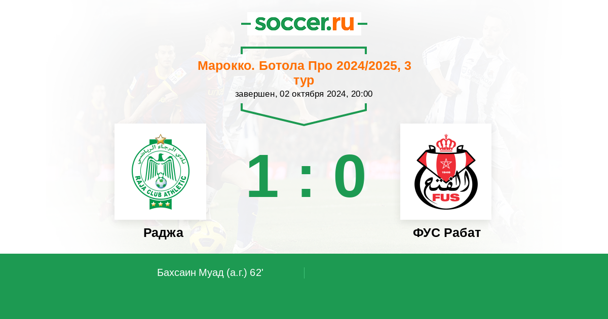 Протокол матча Раджа против ФУС Рабат
