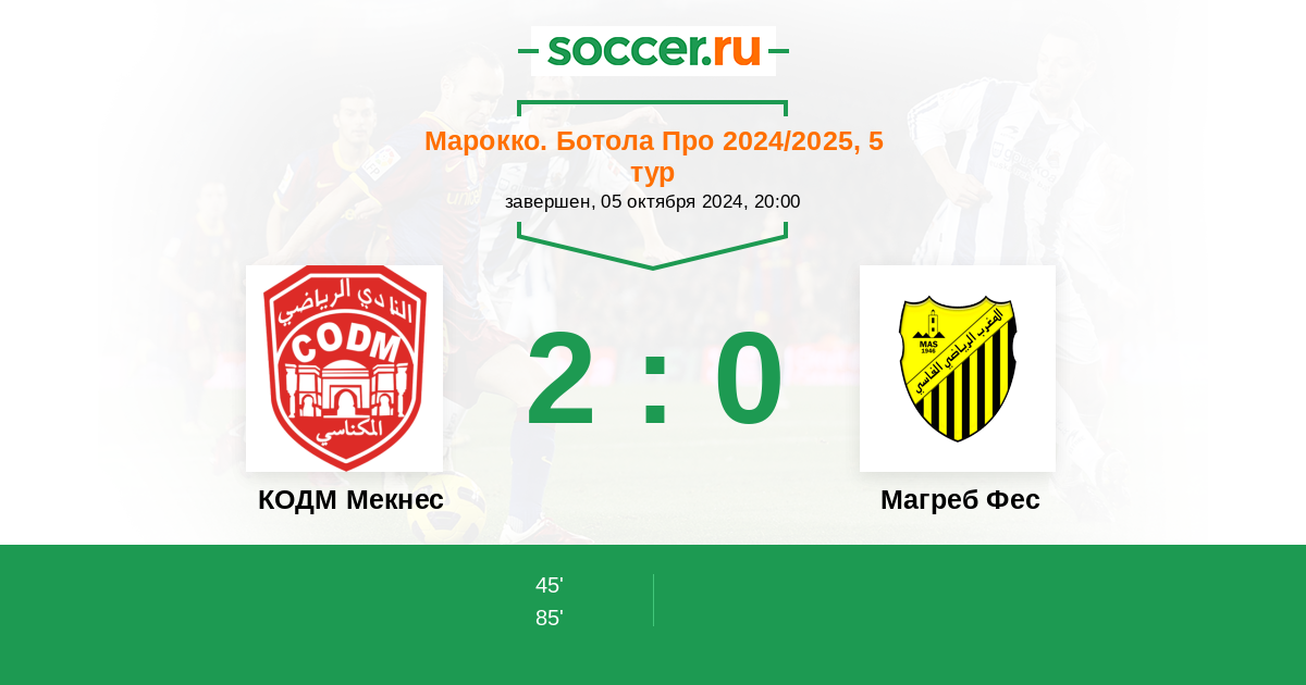 Протокол матча КОДМ Мекнес против Магреб Фес