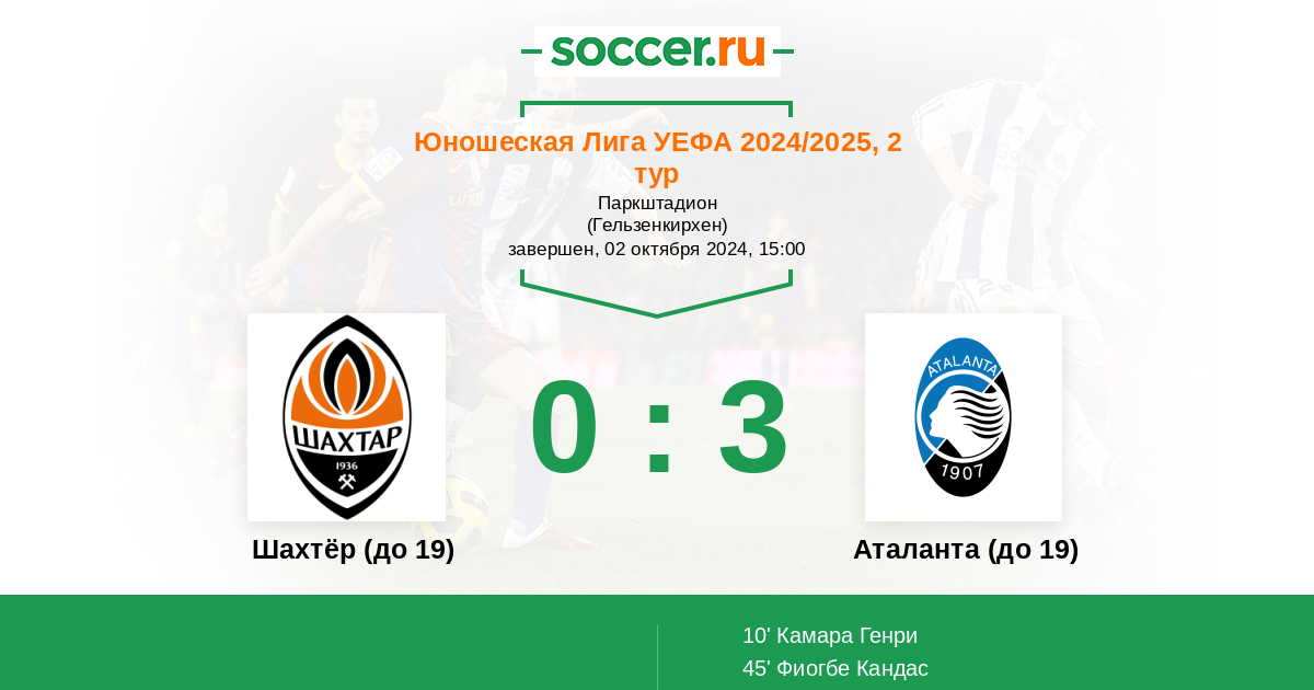 Протокол матча Шахтёр (до 19) против Аталанта (до 19)
