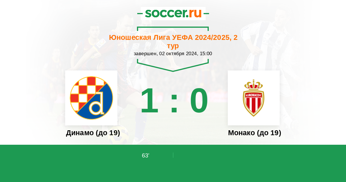 Протокол матча Динамо (до 19) против Монако (до 19)