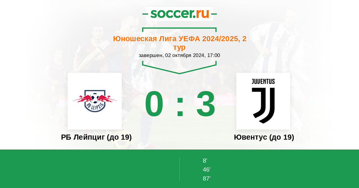 Протокол матча РБ Лейпциг (до 19) против Ювентус (до 19)
