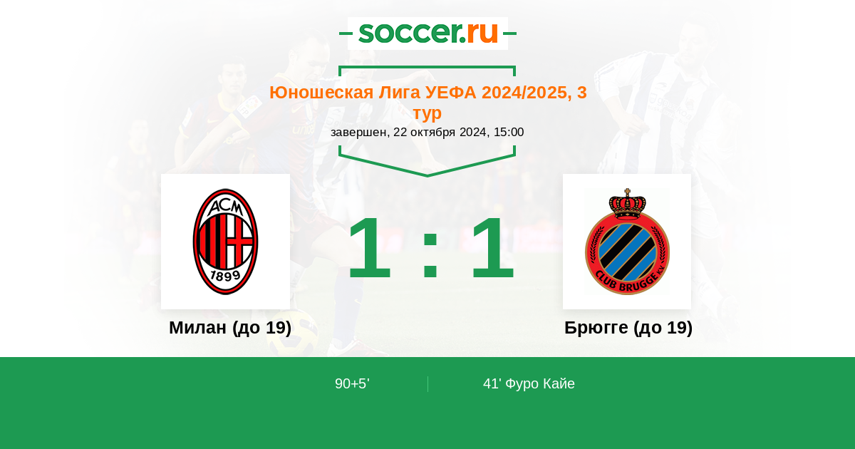 Протокол матча Милан (до 19) против Брюгге (до 19)