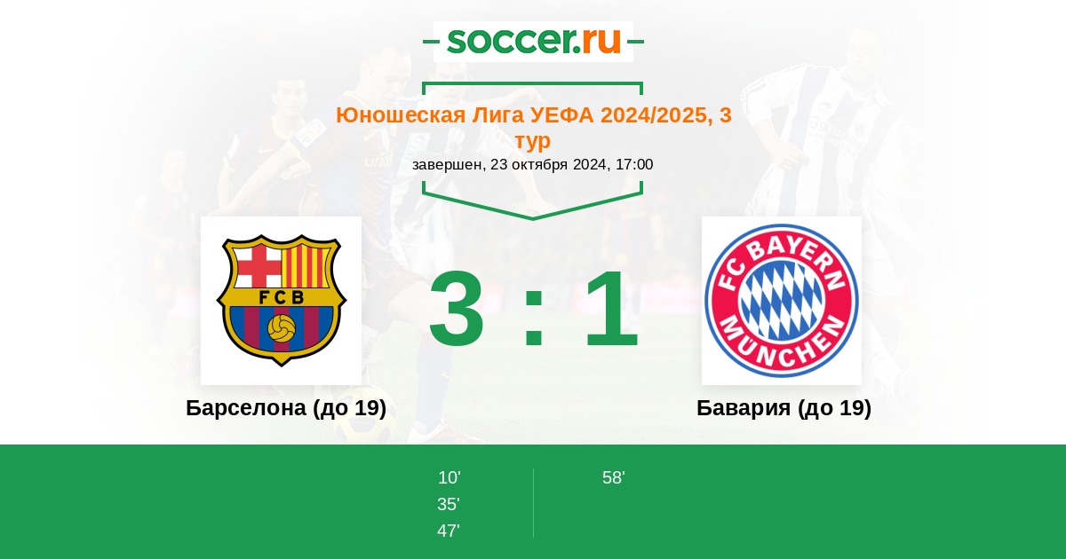 Протокол матча Барселона (до 19) против Бавария (до 19)