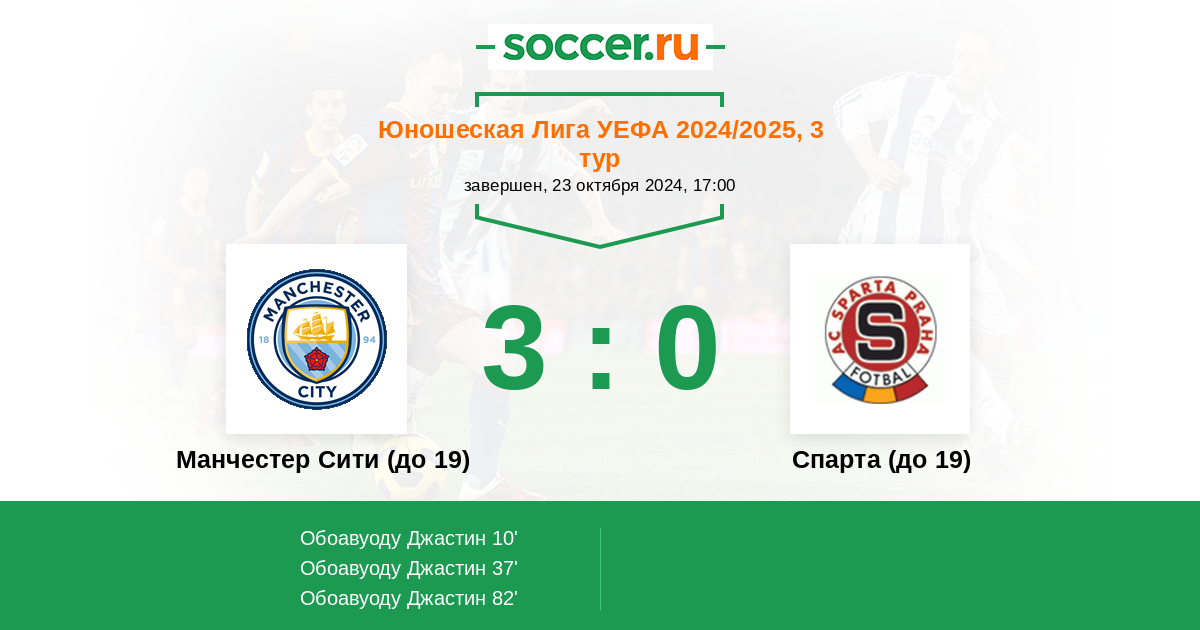 Протокол матча Манчестер Сити (до 19) против Спарта (до 19)