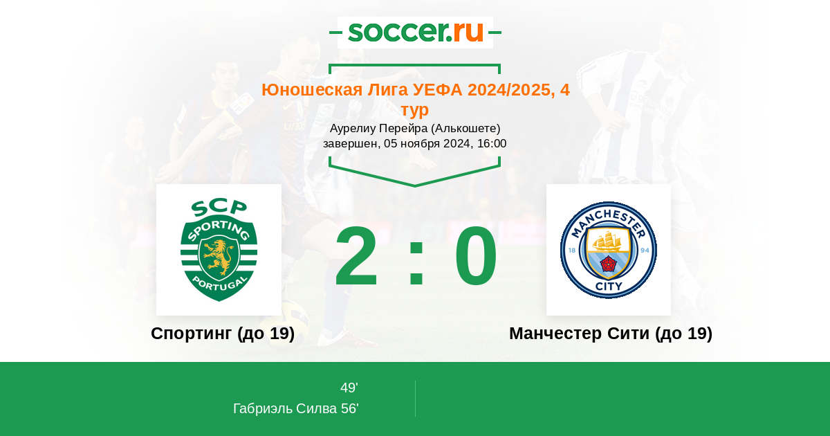 Протокол матча Спортинг (до 19) против Манчестер Сити (до 19)