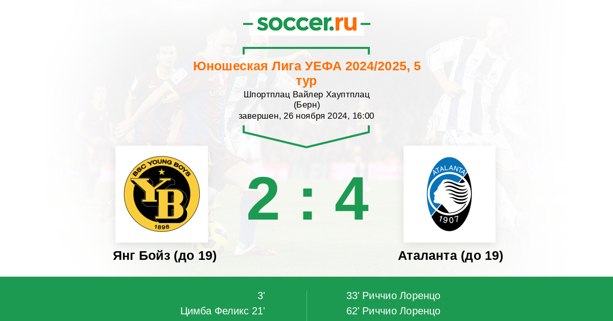 Протокол матча Янг Бойз (до 19) против Аталанта (до 19)