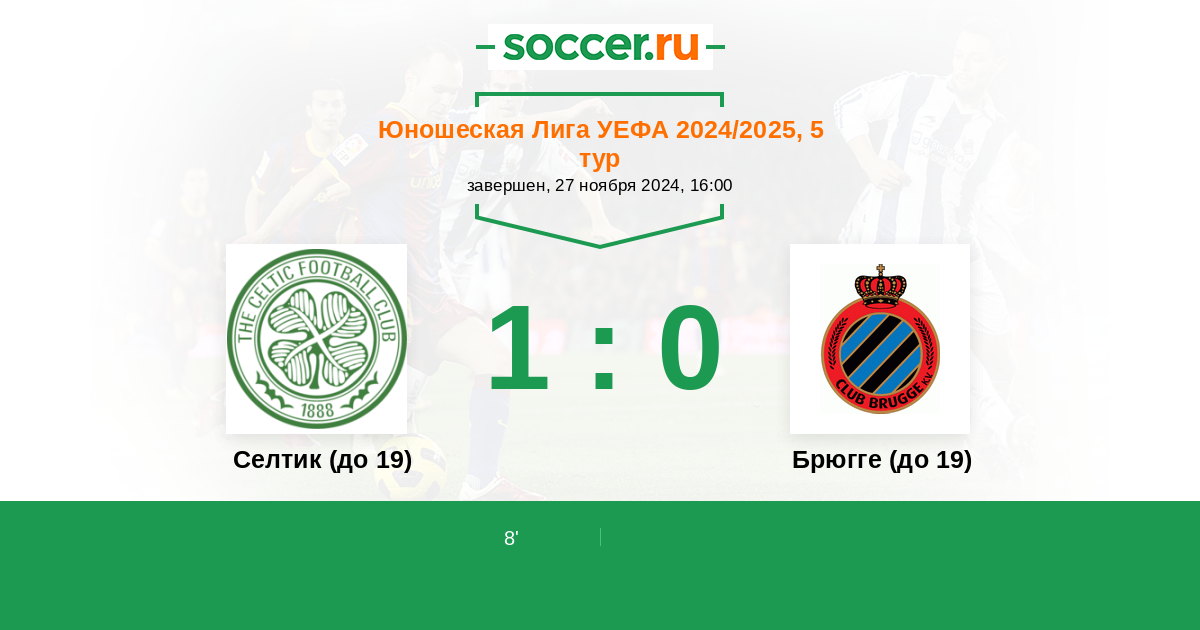 Протокол матча Селтик (до 19) против Брюгге (до 19)