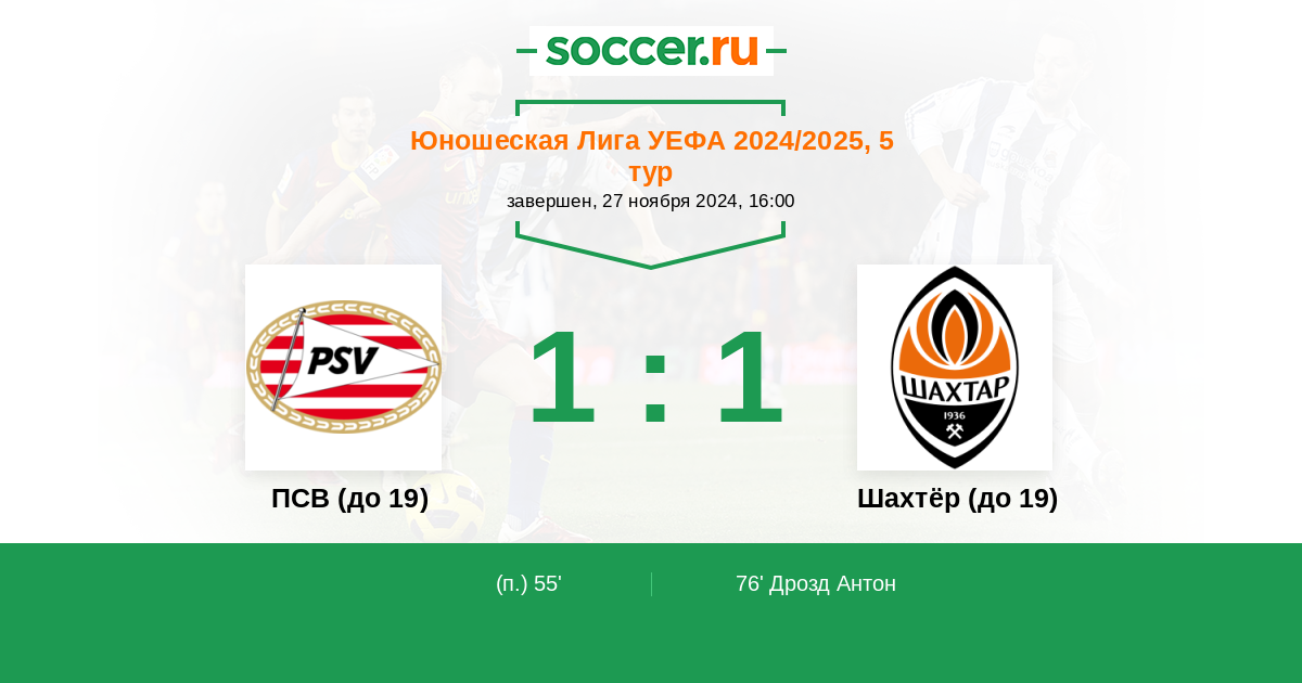 Протокол матча ПСВ (до 19) против Шахтёр (до 19)