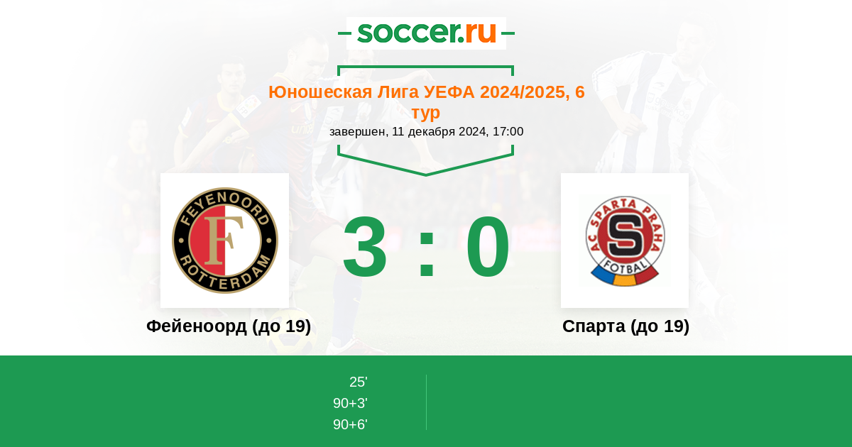 Протокол матча Фейеноорд (до 19) против Спарта (до 19)