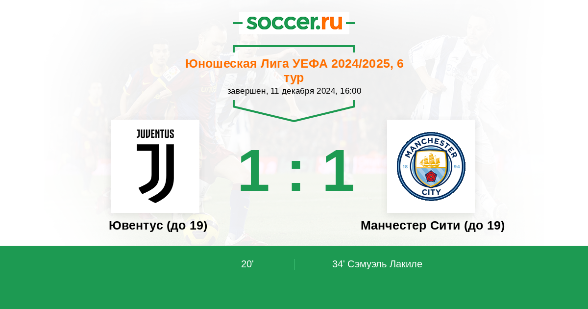 Протокол матча Ювентус (до 19) против Манчестер Сити (до 19)