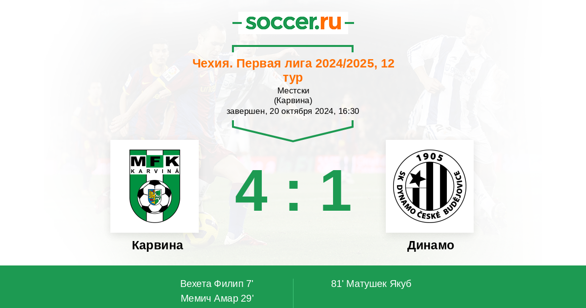 Протокол матча Карвина против Динамо