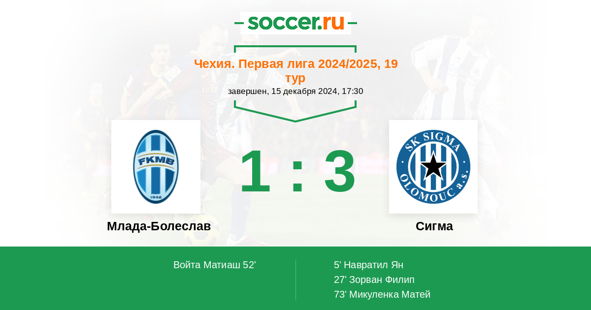 Протокол матча Млада-Болеслав против Сигма