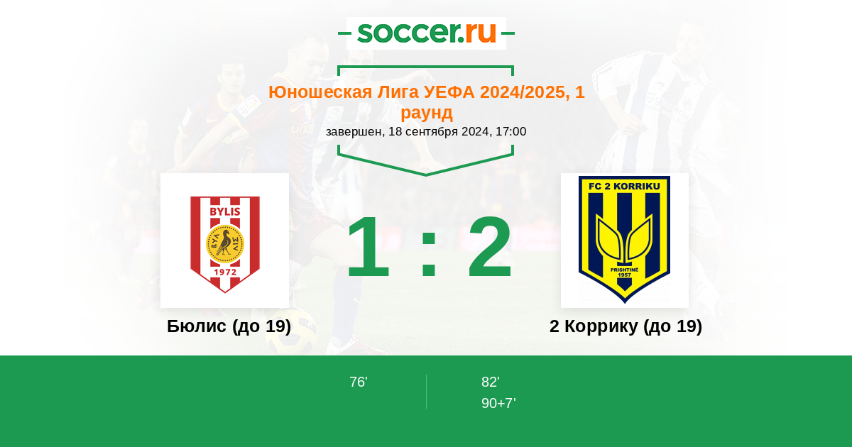 Протокол матча Бюлис (до 19) против 2 Коррику (до 19)