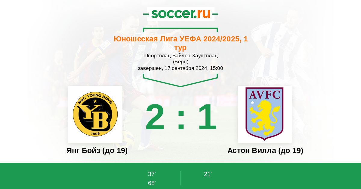 Протокол матча Янг Бойз (до 19) против Астон Вилла (до 19)