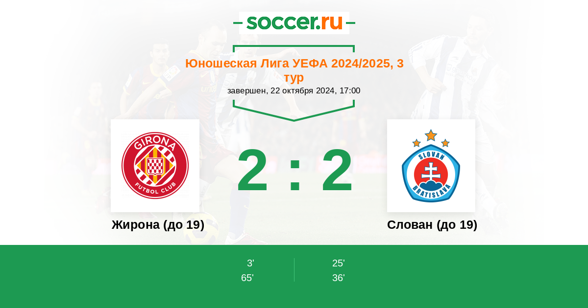 Протокол матча Жирона (до 19) против Слован (до 19)