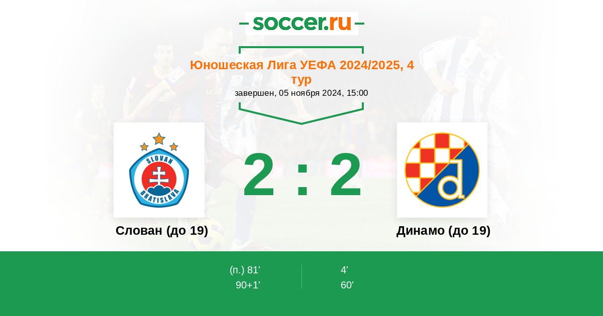 Протокол матча Слован (до 19) против Динамо (до 19)