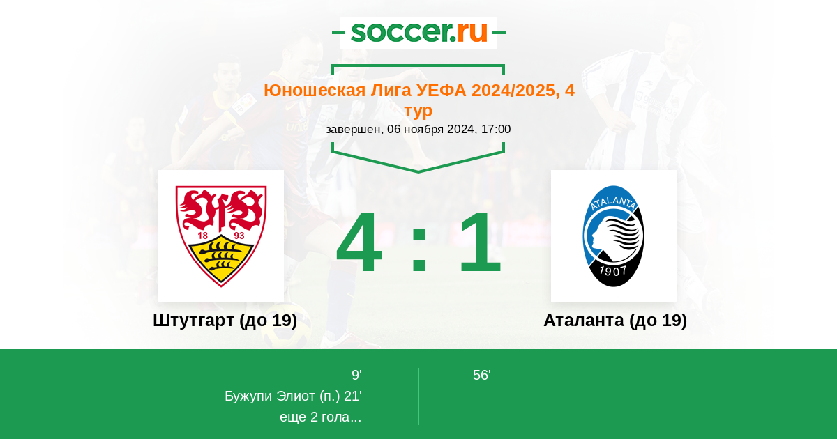 Протокол матча Штутгарт (до 19) против Аталанта (до 19)