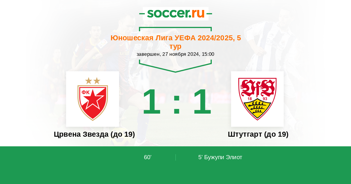 Протокол матча Црвена Звезда (до 19) против Штутгарт (до 19)