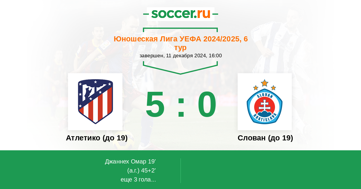 Протокол матча Атлетико (до 19) против Слован (до 19)