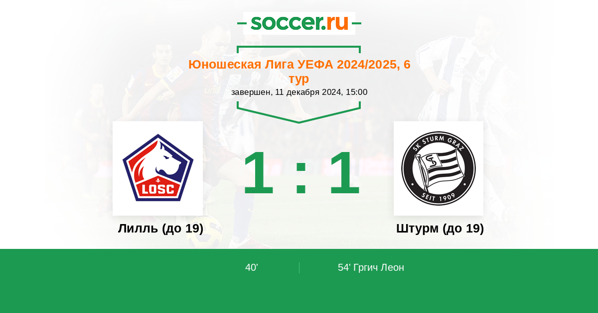 Протокол матча Лилль (до 19) против Штурм (до 19)