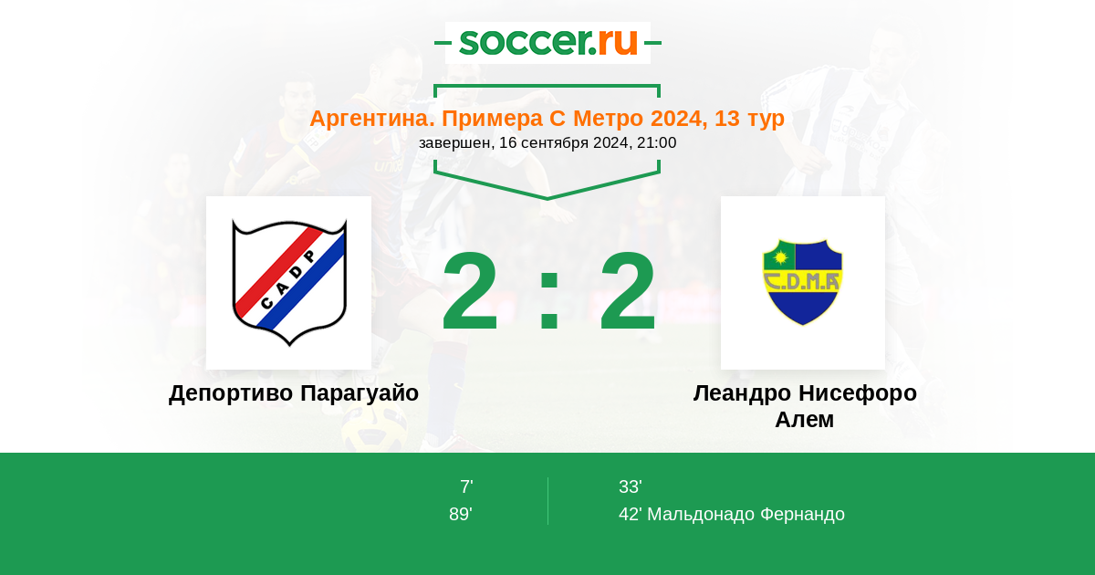Протокол матча Депортиво Парагуайо против Леандро Нисефоро Алем