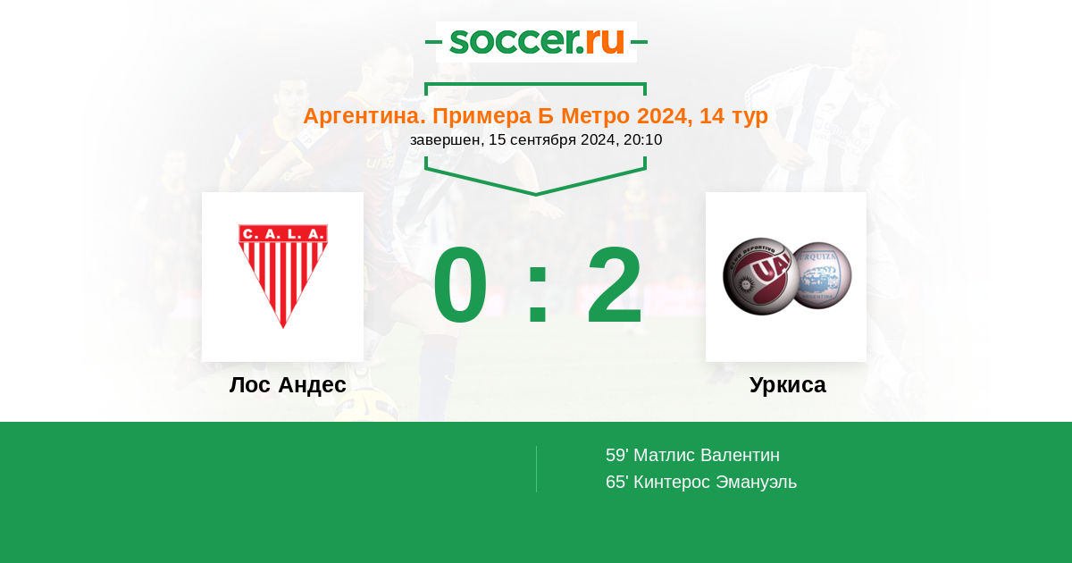 Протокол матча Лос Андес против Уркиса