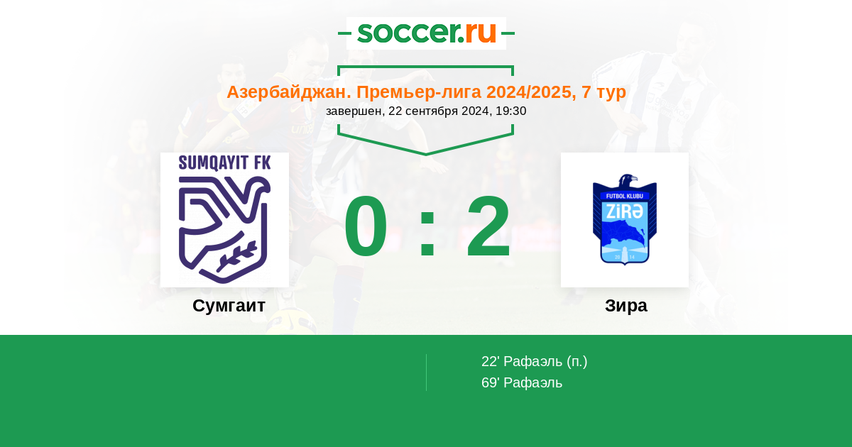 22’ 0:1(П) Рафаэль