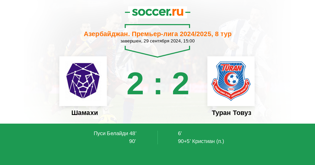 Протокол матча Шамахи против Туран Товуз