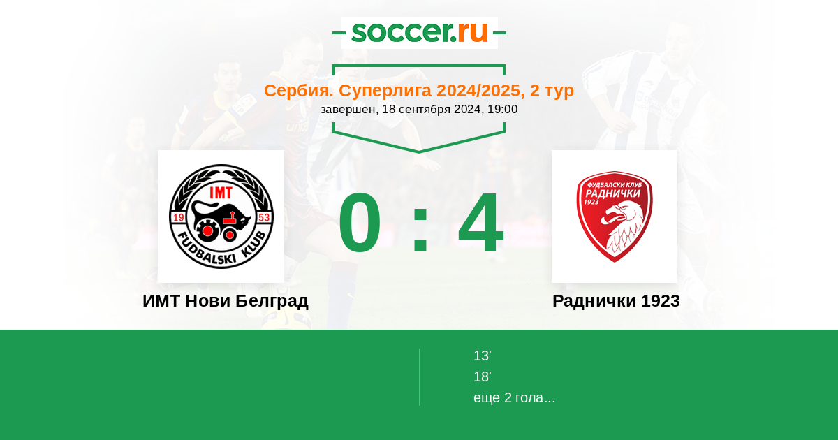 Протокол матча ИМТ Нови Белград против Раднички 1923